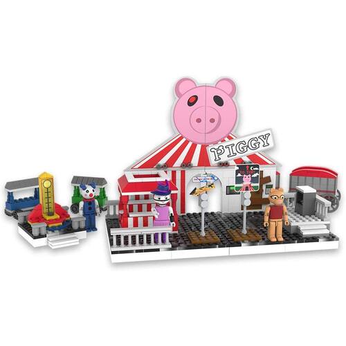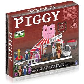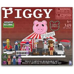 PRODUTO INTERNACIONAL. Construa uma cena incrível do Capítulo 8 do livro Piggy com o Conjunto de Construção de Luxo do PIGGY Carnival Deluxe! Com 3 figuras de personagens construíveis, uma tenda de carnaval colorida e carrinhos divertidos, este conjunto de 356 peças é um must-have para qualquer fã de Piggy