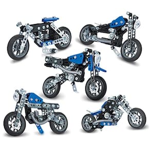 Dê o pontapé inicial na sua imaginação enquanto explora o mundo da engenharia real com o Conjunto de Motocicletas Modelo 5 em 1 de Meccano. Construa uma motocicleta tradicional com um design clássico. Uma vez que seu passeio esteja completo, você pode levar sua bicicleta para dar uma volta, ou desmontá-la e construir outro estilo de motocicleta. Siga as instruções para construir 1 de 5 motocicletas exclusivas. Depois disso, cabe a você e sua imaginação criar uma motocicleta de seu próprio design! Este conjunto de modelos 5 em 1 vem com 174 peças, 2 ferramentas ergonômicas e instruções fáceis de seguir. Explore as maravilhas mecânicas do mundo com o Conjunto de Motocicletas Modelo 5 em 1.