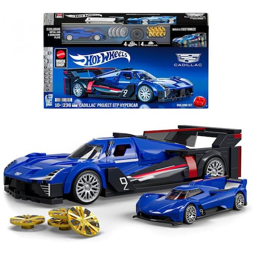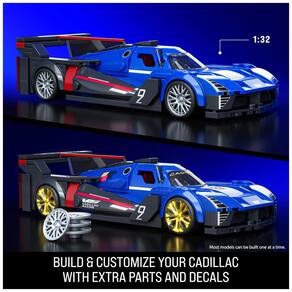 Prepare-se para muita velocidade com o Cadillac Project GTP Hypercar em escala 1:32 da série Hot Wheels Speed Series! Este conjunto autêntico e detalhado inclui decalques para personalização, 2 conjuntos de capas de rodas, uma placa de metal exclusiva e um carro de metal combinando. Monte o carro do futuro com portas que se abrem e aerofólio fielmente reproduzido. Transforme o seu carro com adesivos personalizados e coberturas de rodas. Colecione todos os carros da Série Speed e construa sua coleção. Compatível com outras marcas de blocos de construção.