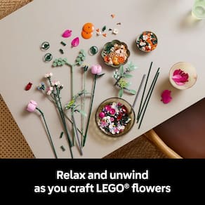 - Explore mais produtos botânicos LEGO – Este buquê construído em tijolos pode ser combinado com outros conjuntos (vendidos separadamente) na coleção LEGO Botanicals