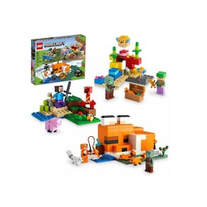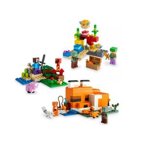 - 3 conjuntos LEGO Minecraft - O pacote Overworld Adventures da Target combina The Fox Lodge (21178), The Creeper Ambush (21177) e The Coral Reef (21164) para crianças, meninos e meninas de 8 anos ou mais