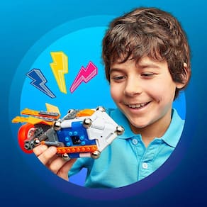 Corra em ação com um visor de ímã reconstruível! Pronto, pronto, magnetize! Construa diferentes veículos de alta velocidade com o Magnext 4-em-1 Mag-Racers! Magnext possui painéis inovadores e um sistema de construção interligado para que você possa construir com tijolos e ímãs. Duro e resistente, este piloto pode suportar até mesmo as pistas mais cheias de ação. Baixe o aplicativo Mega Construx Beyonders para reconstruir rev-racer em Dragmoto, Deep Diver ou Hover-Hog. O poder do magnetismo é seu para brincar! Ideal para Construtores Maravilhas, idades a 6 anos ou mais