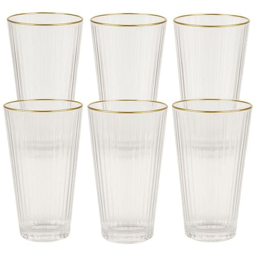 Este jogo com 6 copos de vidro de 330ml é ideal para servir bebidas com muito mais elegância. Produzidos em vidro transparente de alta qualidade, possuem um design moderno com linhas verticais em relevo, que realçam a beleza da peça e proporcionam um toque sofisticado à sua mesa.