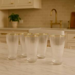 O grande destaque está na borda dourada, que garante um charme especial e torna cada copo perfeito para ocasiões especiais, jantares elegantes ou mesmo para transformar o dia a dia em momentos mais refinados.