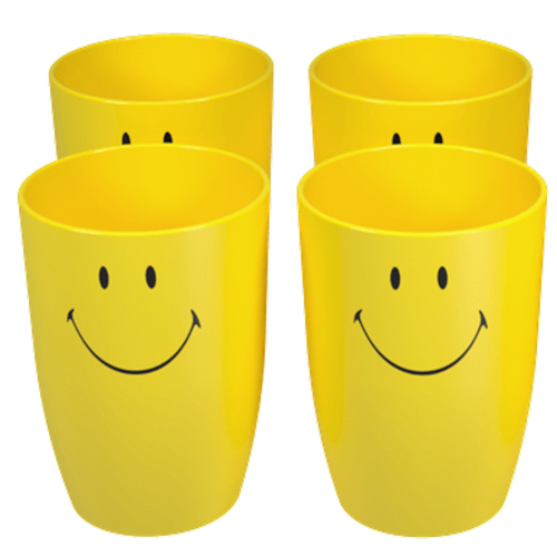 Conjunto de Copos Coza Cozy 400ml 4 Peças Smiley Amarelo