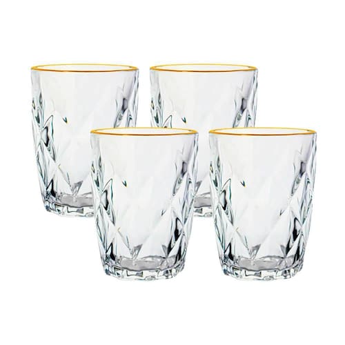Conjunto de Copos de Vidro 4 peças Transparente Diamond Fio de Ouro 270ml - Lyor