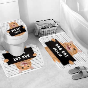 Tamanho do tapete antiderrapante: 45* 39 cm; tamanho do tapete de banho: 75* 45 cm; tamanho do assento do vaso sanitário: 38* 42 cm; tamanho da cortina de chuveiro: 180* 180 cm; peso: 800 g; material: poliéster; cor: igual à primeira foto; pacote: 1 x tapete antiderrapante, 1 x tapete antiderrapante de banheiro, 1 x assento de vaso sanitário, 1 x cortina de chuveiro Este divertido e divertido chuveiro com design “Bad Cat” O conjunto de cortinas adiciona um toque único e peculiar ao seu banheiro, com uma cortina de poliéster de alta qualidade com impressão digital. O conjunto inclui 4 peças: uma cortina de chuveiro de 180 × 180 cm, um tapete de banho de 45 × 75 cm, uma tampa de vaso sanitário de 38 × 42 cm e um tapete antiderrapante para uma reforma completa do banheiro. Feita de poliéster durável, a cortina de chuveiro é resistente à água e projetada para suportar o uso diário, ao mesmo tempo em que adiciona estilo e funcionalidade ao seu banheiro. O design fácil de instalar apresenta ganchos resistentes à ferrugem para uma configuração rápida, e os tapetes do banheiro oferecem segurança antiderrapante, garantindo conforto e segurança. Perfeito para amantes de gatos, este conjunto é uma declaração divertida em qualquer banheiro, ideal para criar um espaço temático ou adicionar personalidade com um design humorístico.