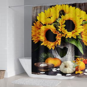 Tamanho do tapete antiderrapante: 45* 39 cm; tamanho do tapete de banho: 75* 45 cm; tamanho do assento do vaso sanitário: 38* 42 cm; tamanho da cortina de chuveiro: 180* 180 cm; peso: 800 g; material: poliéster; cor: igual à primeira foto; pacote: 1 tapete antiderrapante, 1 tapete antiderrapante de banheiro, 1 x assento de vaso sanitário, 1 x cortina de chuveiro. Design divertido de girassol — Apresenta um tapete antiderrapante de banheiro impressão digital de girassóis, abóboras e flores, trazendo uma atmosfera divertida e luminosa à decoração do seu banheiro. Material de poliéster durável — Feito de tecido de poliéster de alta qualidade que é impermeável e duradouro, garantindo proteção para seu banheiro com o uso diário. Conjunto de banheiro completo — Inclui uma cortina de chuveiro de 180 × 180 cm, um tapete de banho antiderrapante (45 × 75 cm) e uma tampa de vaso sanitário (38 × 42 cm) para proporcionar uma aparência coordenada e elegante. Impermeável e fácil de cuidar — Projetado para evitar respingos de água e, ao mesmo tempo, ser lavável na máquina para facilitar a manutenção, oferecendo conveniência para famílias ocupadas. Perfeito para banheiros domésticos e de hóspedes — Ideal para adicionar um toque alegre e vibrante a qualquer banheiro, seja em sua casa ou em um banheiro de hóspedes, com seu design arrojado e colorido.