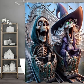 Tamanho da cortina de chuveiro: 180* 200 cm Peso: 410 g Material: poliéster Cor: igual à primeira foto Pacote: 1 x cortina de chuveiro Design assustador e divertido: com uma montanha-russa hilária com esqueletos e uma bruxa, esta cortina de chuveiro com tema de Halloween traz diversão e emoção assustadoras ao seu banheiro durante a época festiva. Durável e impermeável: Feita de poliéster de alta qualidade, a cortina de chuveiro e os acessórios são resistentes à água e projetados para lidar com a umidade, garantindo durabilidade e fácil manutenção. Conjunto de banheiro completo: o conjunto inclui uma cortina de chuveiro (180x200cm), uma tampa de vaso sanitário (45x35cm) e um tapete de banho antiderrapante (74x45cm), oferecendo uma aparência coordenada e festiva para seu banheiro. Fácil instalação: inclui 12 ganchos para facilitar a suspensão e um processo de instalação descomplicado, garantindo uma configuração rápida para a decoração do banheiro com tema de Halloween. Ideal para o Halloween: perfeito para criar uma atmosfera assustadora e divertida em seu banheiro, tornando-o a escolha ideal para festas de Halloween e decoração sazonal.
