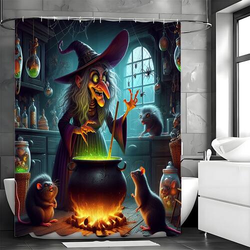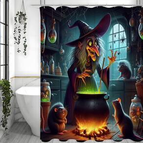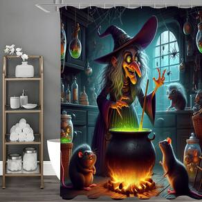 Tamanho da cortina de chuveiro: 180* 200 cm Peso: 410 g Material: poliéster Cor: igual à primeira foto Pacote: 1 x cortina de chuveiro Design assustador de Halloween: apresenta uma bruxa mágica preparando uma poção com ratos e elementos místicos, criando uma atmosfera assustadora de Halloween para seu banheiro. Poliéster durável e impermeável: feita de poliéster de alta qualidade, esta cortina de chuveiro é durável, à prova d'água e projetada para uso duradouro, perfeita para as necessidades diárias do banheiro. Conjunto completo de decoração de banheiro: inclui uma cortina de chuveiro (180 x 200 cm), tapete de banho antiderrapante (45 x 75 cm), tampa da tampa do vaso sanitário (38 x 44 cm) e tapete (45 x 37,5 cm), adicionando um toque assustador completo ao seu banheiro. Perfeito para entusiastas do Halloween: ideal para quem adora o Halloween, este conjunto adiciona uma atmosfera divertida e assustadora ao seu banheiro com seu design vibrante e exclusivo com tema de bruxa. Fácil de cuidar: lavável à máquina, este conjunto de cortinas de chuveiro de poliéster é fácil de limpar e manter, garantindo que seu banheiro permaneça assustador e fresco durante toda a temporada de Halloween.