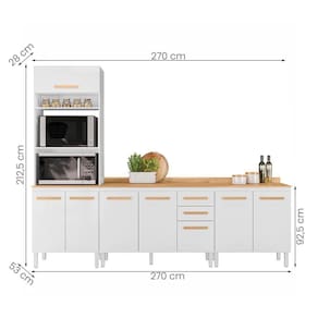Marca: DoceLar | Altura: 212,5 cm | Largura: 270 cm | Comprimento: 53 cm | Altura Embalado: 30,2 | Largura Embalado: 70,2 | Comprimento Embalado: 131,2 | Peso: 101,940 kg | Peso Embalado: 10,940 | Estado de Origem: SP | Material: MDP | Modelo: Conjunto Aria 8 Portas 2 Gavetas | Descrição do Tamanho: 270 cm x 212,5 cm x 53 cm | Garantia em meses: 03 meses de garantia para de fabricação. | Precisa de montagem?: Sim, sugerimos a contratação do nosso de montagem (para os CEPs em que o está disponível) ou de algum experiente de sua preferência. | Tipo de móveis de cozinha: Armario de Cozinha | É kit: Sim | Altura do armário: 212,5 | Materiais do corpo: MDP | Fonte do produto: DoceLar | Modelo detalhado: Conjunto Aria 8 Portas 2 Gavetas | Profundidade do balcão: 53 | Material das corrediças: telescópicas | Com prateleiras: Sim | Material das alças: MDF | Quantidade de portas: 8 | Estilo: Classico | Altura do balcão: 92,5 | Profundidade do armário: 28 | Quantidade de gavetas: 2 | Materiais das portas: MDP | Quantidade de peças: 1 | Linha: Cozinha | Largura do balcão: 270 | Largura do armário: 70 | Inclui tampo: Sim | Condição do item: | Código ANVISA (32481): Não se aplica | Código da Homologação ANATEL (32495): Não se aplica | Código INMETRO (32486): Não se aplica | Código MAPA (32485): Não se aplica | Baterias são necessárias?: Não aplicavel | Certificação de teste externa: Não se aplica | Componentes incluídos (included_components): Armarios de Cozinhas | da peça (part_number): 1 | de caixas (number_of_boxes): 4 | do Modelo (model_number): 25645 | Principais Características do Produto (bullet_point#0): Feito em MDP. | Principais Características do Produto (bullet_point#1): Com corrediças telescópicas e dobradiças metálicas. | Principais Características do Produto (bullet_point#2): Pés com regulagem de altura. | Quantidade de Itens (number_of_items): 1 | É frágil?: Não Cor: Branco