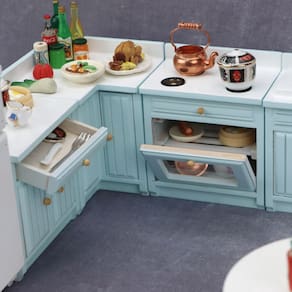 Dimensões: Mesa de lavar 7,5x5,0x8,8 cm Mesa de tempero (canto) 7,5x7,5x8,8 cm Fogão 7,5x5,0x8,8 cm Mesa de corte 7,5x5,0x8,8 cm Material: madeira Peso: 500 g Perfeito para casas de bonecas em escala 1:12: este conjunto de cozinha azul é uma adição impressionante a qualquer casa em miniatura, com uma cozinha completa com pia, fogão e armários. Durável e detalhado: feito de madeira de alta qualidade, este conjunto foi projetado com detalhes realistas, como botões e alças dourados, trazendo autenticidade à sua casa de bonecas. Melhora a brincadeira de fingir: este conjunto de cozinha em miniatura incentiva as crianças a explorarem sua imaginação, criando infinitos cenários de brincadeira de fingir. Modelo sem brinquedo: Este é um modelo decorativo e não é adequado para uso na vida real. Peças pequenas podem representar um risco de asfixia para crianças menores de 3 anos. Tamanho e compatibilidade: Dimensões: mesa de lavar roupa 7,5x5,0x8,8 cm, mesa de tempero (canto) 7,5x7,5x8,8 cm, fogão 7,5x5,0x8,8 cm, mesa de corte 7,5x5,0x8,8 cm. Serve para casas de bonecas em escala 1:12.