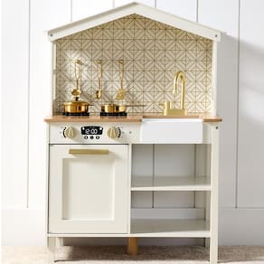 - DESIGN CLÁSSICO DE FAZENDA: este conjunto de brinquedos apresenta janelas personalizadas de 4 painéis, um fogão falso e um forno espaçoso com botões realistas, para proporcionar uma experiência culinária envolvente e elegante