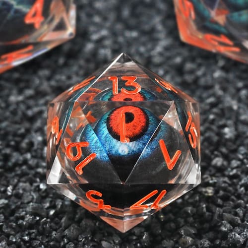 - MOVING EYE DICE: Um olho realista dentro do dado, flutuando em um líquido, sempre parece reto, não importa como os dados rolem. Com um design moderno e exclusivo, eles são um espetáculo absoluto em qualquer mesa de jogo