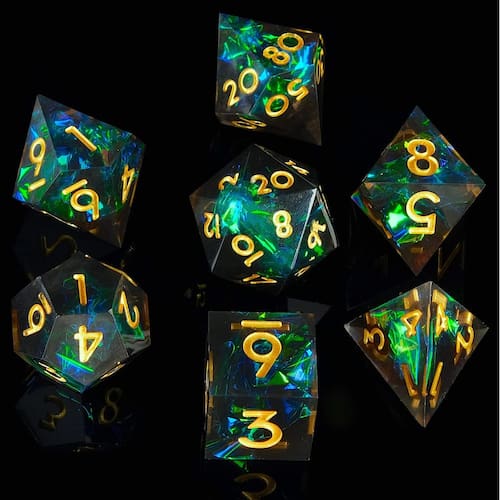 Dados - Material dos dados: resina natural, resistente ao desgaste, forte. A resina natural pode efetivamente evitar arranhões, dados de resina como os novos por um longo tempo. - Especificação do conjunto de dados DND: 7 peças por conjunto, inclui D4, D6, D8, D10, D12, D20 e D%. Cada dado afiado de resina é lixado e polido à mão para manter suas belas bordas afiadas. - Leitura fácil e boa sensação: números grandes e fáceis de ler com sensação de mão irresistível e pesada. O tamanho é um padrão comum de dados D&D no mercado. - Multiuso: utilizado para jogos de tabuleiro, jogos RPG de mesa como D&D (Dungeons and Dragons), Shadowrun, Pathfinder, Savage World, Warhammer, Yahtzee, Heroscape e muitos outros RPGs, ensino de matemática, etc. - Compre com confiança: estamos comprometidos em fornecer o melhor produto e excelentes serviços para você. Se ocorrer algum problema de qualidade, não hesite em recorrer ao nosso serviço de atendimento ao cliente para obter ajuda, não pouparemos esforços para ajudá-lo a resolver o problema.