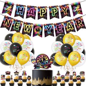 Kit completo de decoração de Ano Novo: inclui um banner em estilo neon “Feliz Ano Novo”, 18 balões de látex estampados, 16 coberturas de cupcake e 2 fitas pretas, perfeitas para criar um espaço de celebração festiva. Materiais de qualidade premium: feitos de látex durável e papel ecológico; não tóxico, seguro para crianças e adultos e adequado para uso interno ou externo. Tema Bright Neon City: apresenta gráficos vívidos do horizonte da cidade, fogos de artifício e tipografia brilhante para criar uma atmosfera moderna e energética de festa de Ano Novo. Fácil configuração e design reutilizável: o banner e as coberturas de bolo são simples de montar, enquanto os balões podem ser inflados com ar ou hélio para uma decoração rápida. Perfeito para eventos de contagem regressiva: ideal para festas de Ano Novo de 2026, reuniões familiares, celebrações no escritório ou cenários fotográficos festivos para receber o ano novo em grande estilo.