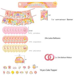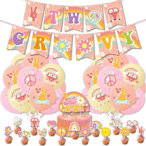Conjunto completo de temas hippies — Inclui um banner vibrante de “Feliz Aniversário”, signo da paz, balões de flores e coberturas de bolo divertidas, perfeitas para uma festa de aniversário boho descolada. Design colorido e divertido — apresenta balões rosa, amarelos e laranja com símbolos da paz, flores e motivos de arco-íris, criando uma atmosfera retrô e alegre. Coberturas de bolo e cupcake incluídas — Vem com 16 coberturas de bolo e inserções de cupcake, facilitando a decoração e adicionando detalhes divertidos à sua mesa de sobremesas de aniversário. Materiais duráveis — Feitos de látex de alta qualidade e papel resistente, garantindo cores vibrantes e fácil configuração que durarão todo o evento. Perfeito para festas infantis — Ideal para uma festa de aniversário descolada, com tema floral ou hippie, adicionando uma atmosfera única e divertida às suas decorações e sessões de fotos.