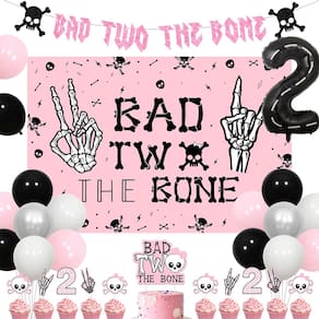 As decorações de festa Bad Two the Bone incluem: