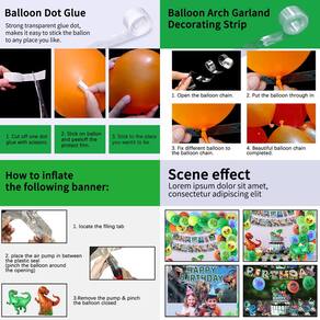 Tema vívido de dinossauros: dê vida ao mundo pré-histórico com adoráveis estampas de dinossauros, cores vivas e banners de dinossauros em estilo cartoon — perfeitos para aniversários de crianças. Kit de decoração tudo-em-um: inclui balões de látex, balões de alumínio, um banner de “Feliz Aniversário”, coberturas de bolo e acessórios para uma configuração temática completa. Materiais de qualidade premium: feitos de látex durável e não tóxico, filme de alumínio e papel — seguros para crianças e projetados para uso duradouro. Fácil de construir: simples de montar em um arco de balão ou pano de fundo com as ferramentas incluídas, ideal para entusiastas da decoração DIY. Perfeito para festas infantis: ótimo para aniversários com temas de dinossauros, eventos em sala de aula ou celebrações ao ar livre — adorado tanto por meninos quanto por meninas.