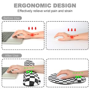 - Design ergonômico: este mousepad com apoio para o pulso se adapta à forma natural do pulso, aliviando a pressão e fornecendo suporte ideal ao pulso, garantindo uma experiência confortável de digitação ou jogo