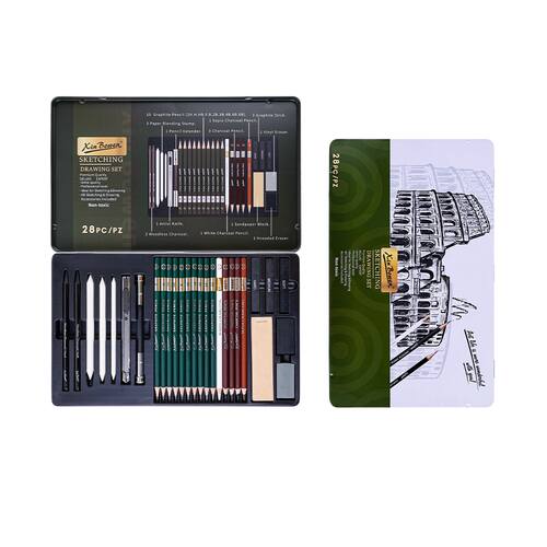 Material: Madeira Metal Dimensões: 30,6 cm × 19 cm × 1,4 cm Peso: 461 g Conjunto completo de esboços: este conjunto de 28 peças inclui tudo o que você precisa para esboçar e desenhar, incluindo lápis de grafite, carvão, tocos de mistura, borrachas e um apontador. Grafite e carvão de alta qualidade: com uma variedade de lápis de grafite (2B e outros) e carvão, ideais para sombrear, detalhar e criar traços ousados para artistas iniciantes e profissionais. Ferramentas de desenho essenciais: junto com lápis e carvão, este conjunto vem com ferramentas como misturar tocos, uma borracha amassada e um bloco de lixa, tornando-o perfeito para a criação de arte detalhada. Estojo de metal portátil: todos os itens são cuidadosamente armazenados em um estojo de metal compacto e durável, proporcionando fácil portabilidade e garantindo que seus materiais de arte sejam organizados e seguros em qualquer lugar. Perfeito para artistas de todos os níveis: se você está apenas começando ou tem anos de experiência, este conjunto de arte versátil fornece materiais de qualidade profissional para aprimorar seus esboços, desenhos e obras de arte.
