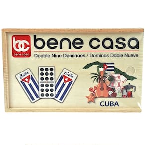 Bene Casa - Conjunto de dominó Double Nines com bandeira cubana - 2 a 10 jogadores - Caixa de madeira com 55 dominós