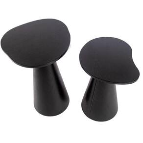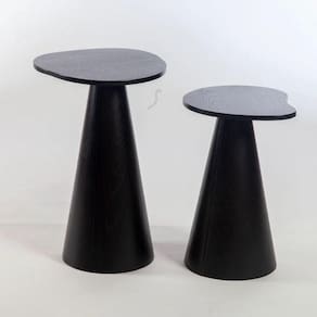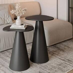 Mesa Lateral Orgânica Redonda, Tampo 51 cm em MDF Melamina Madeira Ébano, Base em MDF Flexivel Laminada em Madeira Ébano.