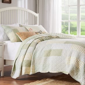 - Dimensões: o conjunto duplo inclui uma colcha de 68 x 88 polegadas e uma fronha de 20 x 26 polegadas; o conjunto Full/Queen inclui uma colcha de 90 x 90 polegadas e duas fronhas de 20 x 26 polegadas; o conjunto King inclui uma colcha de 105 x 95 polegadas e duas fronhas de 20 x 36 polegadas.