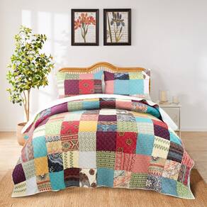 Conjunto de edredões forrado de algodão Greenland Home Renee Upcycle Unique Remnant Fabric, 3 peças King/Cal King