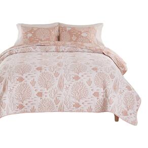 Conjunto de edredões Queen Benjara Amy de 3 peças, tema costeiro, poliéster branco rosa macio