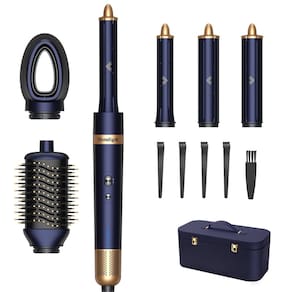 Homdigrk Modelador profissional de ar quente 6 em 1, conjunto de secador de cabelo iônico e modelador de cachos, combina secagem, suavização, ondulação e volume em um, incluindo estojo de armazenamento de viagem - azul prussiano