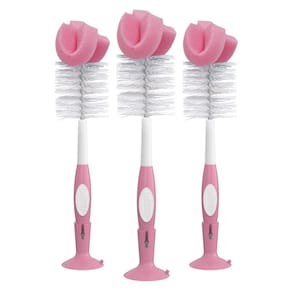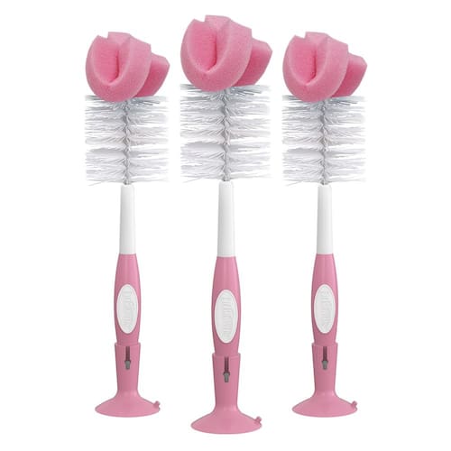 Conjunto de escovas de limpeza de mamadeiras de esponja reutilizáveis Dr. Brown's com suporte de ventosa, esfregão e limpador de mamilos, rosa, pacote com 3 — escova para mamadeiras. Projetado para uso com todas as mamadeiras Dr. Brown's de pescoço estreito e largo.
