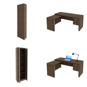 O conjunto Home Office é composto por 4 peças: 2 mesas em L e 2 armários, com as seguintes medidas: