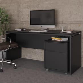 O conjunto de mesa e gaveteiro Tundra é a escolha ideal para aqueles que procuram estilo, funcionalidade e organização no ambiente de trabalho. O Gaveteiro Tundra é ideal para organização, estrutura feito de MDP de 25 mm com gavetas de corrediças telescópicas, uma delas para itens diversos e outra para pastas suspensas. Possui tampo duplo com bordas laqueadas e rodízios de silicone para fácil movimentação. A Mesa de Escritório Tundra é prática e elegante, com estrutura em MDP de 25 mm, distanciadores e sapatas niveladoras cromadas para maior conforto no trabalho, além do tampo duplo em MDF com bordas chanfradas e laqueadas. A combinação de design torna o dia a dia no escritório mais eficiente, funcional e agradável.