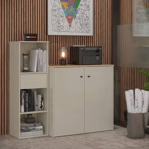 - Conteúdo da Embalagem: 01 Armário Livreiro e 01 Buffet Aparador - Entregue em: 2 Volumes.