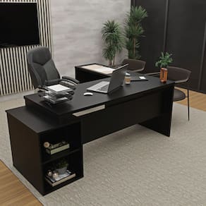 Linhas retas e minimalistas: Combinam com diversos estilos de decoração, do clássico ao moderno, criando um ambiente de trabalho elegante e profissional. Estrutura robusta em MDP: Garante alta resistência e durabilidade para uso prolongado, suportando o peso dos seus pertences com segurança. Bordas em ABS: Acabamento impecável e fácil de limpar, proporcionando um visual clean e sofisticado. Gavetas de abrir com puxadores ergonômicos: Facilitam o acesso aos seus pertences e garantem que tudo esteja organizado e à vista. Gaveta para pasta suspensa: Organize seus arquivos de forma eficiente em uma gaveta espaçosa, garantindo praticidade e fácil acesso aos seus documentos.