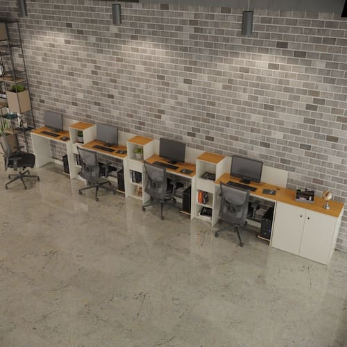 - Conteúdo da Embalagem: 04 Escrivaninha, 03 Livreiro, 01 Buffet e 02 Kit Divisórias - 10 Entregue em: Volumes.