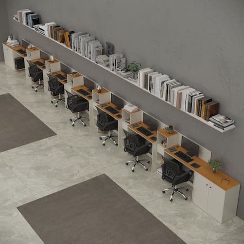 - Conteúdo da Embalagem: 07 Escrivaninha, 06 Livreiro, 02 Buffet e 03 Kit Divisórias - Entregue em: 18 Volumes.