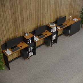 - Conteúdo da Embalagem: 03 Escrivaninha, 02 Livreiro, 01 Buffet e 01 Kit Divisórias - Entregue em: 7 Volumes.