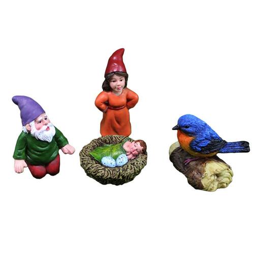 Material: resina Tamanho: comprimento 4,8-5,3 cm Largura 5,8-6,9 cm Peso: 180 g ['Whimsical Gnome Family Set: este adorável conjunto apresenta um gnomo, uma garotinha, um pássaro e um bebê em um ninho, oferecendo uma cena deliciosa e emocionante para seu jardim ou pátio. ', 'Material de resina durável: Feitas de resina de alta qualidade, essas figuras são resistentes às intempéries, garantindo que mantenham suas cores vibrantes e características detalhadas em qualquer ambiente externo. ', 'Perfeito para decoração de jardins e pátios: dê um toque encantador ao seu espaço ao ar livre com este conjunto de enfeites de jardim em miniatura, perfeito para canteiros de flores, gramados ou como parte de uma exibição de jardim maior. ', 'Detalhes pintados à mão: Cada figura é meticulosamente pintada à mão com cores vivas e detalhes finos, dando vida aos personagens com um toque de magia e capricho. ', 'Ótimo para jardins em miniatura: este conjunto familiar de gnomos é ideal para criar um mundo pequeno e extravagante em seu jardim, adicionando um elemento divertido à sua paisagem ou projetos decorativos de bricolage.']