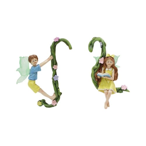 Material: Resina Tamanho: consulte a foto Peso: 127 g ['Whimsical Fairy Design: este conjunto encantador inclui um menino fada subindo em uma videira e uma fada feminina sentada em uma videira lendo, adicionando um toque mágico ao seu jardim ou espaço ao ar livre. ', 'Material de resina durável: feitos de resina de alta qualidade, esses ornamentos de fadas são resistentes às intempéries e construídos para resistir a elementos externos, tornando-os perfeitos para uma decoração de jardim duradoura. ', 'Ideal para decoração de exteriores: pendure essas figuras de fadas em seu jardim, vaso de flores ou pátio para criar uma atmosfera encantadora de conto de fadas com cores vibrantes e designs detalhados. ', 'Artesanato intrincado: cada fada é meticulosamente detalhada, desde suas asas delicadas até suas expressões divertidas, capturando a essência da fantasia e do capricho em sua decoração externa. ', 'Compactas e versáteis: medindo perfeitamente para espaços menores, essas esculturas de fadas são fáceis de pendurar e ideais para adicionar um toque extravagante a qualquer parte do seu jardim ou casa']