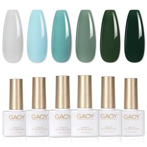 GAOY Conjunto de esmalte de gel verde, 6 cores, verde floresta escura, azul, cinza, kit de esmalte de cura UV para salão de beleza e arte de unhas, faça você mesmo em casa - Polimento de gel brilhante: aplique a camada superior de gel para um acabamento elegante e brilhante; ou aplique a camada superior fosca para acabamento de veludo de inverno. - O pacote inclui: 6 cores de esmalte de gel de 7,3 ml cada. Conjunto básico de unhas de gel para desfrutar da arte das unhas no conforto da sua própria casa! - Fácil de usar: Cure com luz UV por 60s até secar completamente. - Longa duração: até 4 semanas se aplicada adequadamente camada de base e camada superior. - Livre de tóxicos: menor odor em comparação com o esmalte tradicional. Todos os ingredientes estão em estrita conformidade com a FD&C Act e certificação SGS.