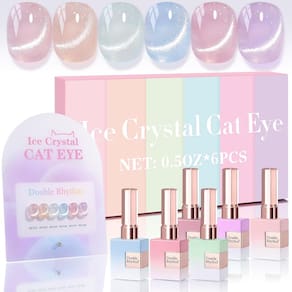 Double Rhythm Conjunto de 6 esmaltes de unhas em gel Cat Eye da mesma cor, frasco de 14,2 g, glitter brilhante com ímã, holográfico, refletivo, magnético, UV, kit em casa (prata, nude, rosa, azul, roxo-T6-28) - 6 peças de esmalte de gel da mesma cor: 6 peças de esmalte de gel de 15 ml para todas as estações, virá com amostras de cores. Este kit de esmalte de gel precisa ser curado sob lâmpada UV ou LED por 60-120s. Deve ser aplicado com gel base e top coat. Agite a garrafa ou aqueça-a com água quente antes de usar, para obter um efeito melhor. - Não tóxico e natural: este kit de esmalte de gel brilhante saudável é feito de 9 ingredientes livres de toxinas, o que o torna seguro e tem baixo odor. Com boa tenacidade e altamente pigmentado, o material de gel premium traz a você um acabamento brilhante e aparência suave e cobertura impecável. - Fácil aplicação para iniciantes: este conjunto de esmaltes de gel com glitter precisa ser curado sob lâmpada de LED para unhas. Elas precisam ser curadas sob lâmpada UV ou LED por 60-120s. Agite a garrafa ou aqueça-a com água quente antes de usar especialmente em climas frios, para obter um efeito melhor. - Aproveite a arte de unhas e economize dinheiro: bonitas atraem a atenção em qualquer ocasião, você pode projetar suas próprias unhas e compartilhá-las com suas irmãs, filha e mãe em casa. Presente perfeito para aniversário, feriado, aniversário, Natal, Dia dos Namorados, presente de Dia das Mães. - Aviso: pode causar uma reação alérgica por contato com a pele. Leia as instruções de uso cuidadosamente. Formulado profissionalmente e utilizado apenas para unhas. Evite contato com olhos, boca e pele. Em caso de contato com eles, enxágue imediatamente com água. Se houver algum incidente, com o médico imediatamente. Pare de usar o produto se houver vermelhidão e coceira. Mantenha fora do alcance das crianças.