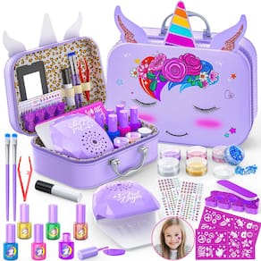 ?Websonaw - Boa qualidade, bons produtos!? Temos tantos anos de experiência em brinquedos infantis, entendemos as necessidades de seus filhos. Entendemos que a infância é uma época de exploração e descoberta, por isso insistimos em oferecer às crianças brinquedos de alta qualidade com o melhor preço em nossa fábrica. ?Por que nos escolher?? Conjunto de esmaltes tudo-em-um: uma grande variedade de itens, grande quantidade, fácil armazenamento, portátil e simples de usar. Esmalte de alta qualidade: à base de água, não tóxico, disponível em uma ampla variedade de cores vibrantes, fácil de aplicar, descascável e pode ser lavado com água sem a necessidade de removedor de esmalte. Vários acessórios DIY: Glitter power, pequenos diamantes, adesivos para unhas, modelos de tatuagem e outros acessórios DIY permitem que as crianças explorem sua criatividade enquanto se divertem. Secador de unhas seguro: sopra ar estável em temperatura ambiente sem luz ultravioleta, garantindo saúde e segurança sem a preocupação de queimaduras ou desconforto na pele. Presente divertido e criativo: oferecer este conjunto de arte de unhas para crianças, sem dúvida, empolgará os mais pequenos. Não é apenas um brinquedo, mas também uma ferramenta que incentiva a criatividade e o artesanato, permitindo que as crianças compartilhem a alegria com os amigos e experimentem a diversão da arte das unhas e do bricolage juntas. ?Conteúdo do pacote? 1 x estojo de armazenamento rosa 1 x secador de unhas 6 x esmaltes 4 x glitter power 2 x diamantes pequenos 1 x frasco de cola 1 x separador de dedos 1 x lixa de unhas 1 x alicate pequeno 2 x pincéis 2 x adesivos de unhas 2 x modelos de tatuagem -?Kit de unhas tudo-em-um para crianças?Este divertido kit de arte de unhas foi especialmente projetado para meninas. Inclui 1* estojo de armazenamento rosa, 1* secador de unhas, 6* esmaltes de unhas, 4* glitter power, 2* diamantes pequenos, 1* frasco de cola, 1* separador de dedos, 1* lixa de unhas, 1* alicate pequeno, 2* pincéis, 2* adesivos de unhas, 2* modelos de tatuagem. Muita quantidade e variedade de estilos para atender às necessidades de seus filhos -?Esmalte não tóxico Safe Easy Peel?Nosso conjunto de esmaltes para meninas é feito de material não tóxico à base de água. Cor rica, colorida completa, adequada para crianças usarem com segurança. Fácil de descascar, sem se preocupar com resíduos ou danos às unhas, fácil de limpar com água, deixe seus filhos brincarem o quanto quiserem e os pais não precisarem se preocupar com isso -?Kit de unhas DIY para meninas?A variedade de gadgets DIY em nosso conjunto de esmaltes infantis permite que as crianças explorem a criatividade enquanto se divertem, cada design exclusivo reflete a personalidade infantil e as incentiva a expressar seu próprio estilo e ideias. O lindo padrão e a caixa em forma de unicórnio podem acomodar facilmente todos os conjuntos de esmaltes e é fácil de transportar, para que as crianças possam compartilhar a alegria com as amigas em várias ocasiões e experimentar a diversão da arte de unhas juntas -?Secador de esmaltes seguro e suave?Projetado para crianças, basta colocar as mãos na almofada macia e, com uma pressão suave, o ventilador começa a soprar ar em temperatura ambiente para secar as unhas. Leva apenas 20 segundos para secar, sem excesso de calor e sem se preocupar com queimaduras ou irritações. As mãos e as unhas do seu filho permanecem saudáveis e protegidas. Nota: Requer 2 pilhas AAA (não incluídas) —?Presente significativo para meninas?3 4 5 6 7 8 9 10 11 12 anos. Presentes para meninas de 12 anos. Este kit de unhas para crianças é um brinquedo divertido e criativo! As crianças vão adorar mimar a si mesmas e às suas amigas com maquiagens de unhas. Não só melhora as habilidades práticas, mas também melhora o vínculo entre pais e filhos. É um presente fantástico para aniversários, meninas, festas de salão, Natal, Dia de Ação de Graças ou qualquer ocasião especial