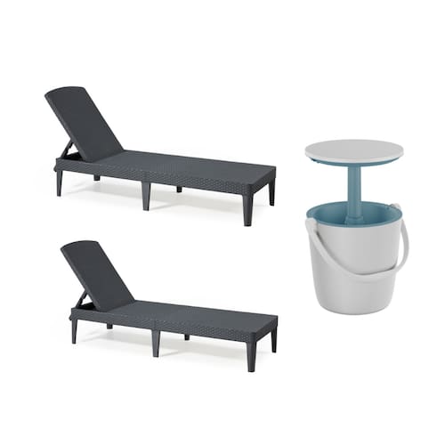 Mais uma opção para você equipar sua piscina para o verão e conhecer a qualidade dos produtos Keter. O conjunto de espreguiçadeiras Jaipur para praia e piscina fabricado pela Keter vem com 2 espreguiçadeiras dobráveis, de encosto reclinável e um lindo cooler que se transforma em mesa de apoio para bebidas. Neste cooler você pode transportar com segurança suas bebidas e mantê-las geladinhas, enquanto curte o sol de verão a beira da praia ou da piscina.