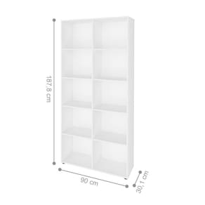 Possui oito prateleiras e dois nichos para armazenar seus objetos decorativos.