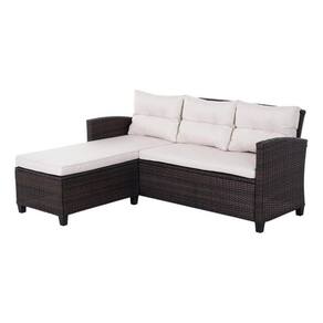 Composto por 1 sofa e 1 banco, ambos acompanhados de almofadas para garantir maior comodidade. Feito com materiais de alta qualidade como aco, polietileno e poliester, garantindo durabilidade e resistencia.
