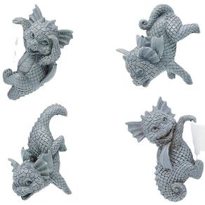 Material: Resina Tamanho: 2-15 cm Peso: 500 g ['Whimsical Dragon Set — Inclui quatro minifiguras de dragões em várias poses divertidas, trazendo charme e personalidade fantásticos para ambientes externos, plantadores e bordas de jardins. ', 'Durable Resin Craft — Feita de resina resistente, cada estátua é resistente às intempéries e adequada para uso a longo prazo em pátios, varandas, vasos de flores ou paisagens em miniatura. ', 'Detalhe texturizado intrincado — Com escalas detalhadas, faces expressivas e caudas onduladas, essas figuras adicionam profundidade visual e criatividade a arranjos naturais ou temáticos. ', 'Opções de exibição versáteis — Ideal para pendurar em bordas de vasos, paredes, prateleiras ou jardins de fadas, aprimorando a decoração interna e a configuração de ornamentos externos com um toque mítico. ', 'Fantasy Accent Piece — Perfeitos para amantes de decoração criativos, esses ornamentos criam cenas de contar histórias, adicionando diversão e mistério a qualquer jardim ou ambiente doméstico.']
