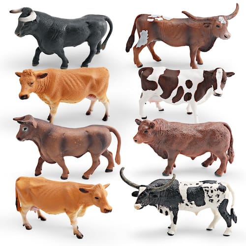 Conjunto de 8 peças de estatuetas de animais de fazenda — Figuras realistas de vacas e touros com bezerros — Modelos de PVC para brincadeiras, brinquedos e decorações educacionais — Perfeitas para crianças, bebês e colecionadores Descrição: Material: PVC Tamanho: 4,5-16 cm Peso: 1600 g Características: Estatuetas realistas de animais de fazenda: este conjunto inclui 8 estatuetas detalhadas de vaca, touro e bezerro com características realistas, perfeitas para brincadeiras educacionais, dioramas ou histórias imaginativas com temas de fazendas. Materiais duráveis e seguros: feitos de PVC de alta qualidade, esses bonecos são projetados para uso duradouro e são seguros para crianças de 3 anos ou mais. Conjunto de brinquedos educativos: essas figuras de animais de fazenda ajudam as crianças a aprender sobre diferentes tipos de vacas e touros, ao mesmo tempo em que incentivam o jogo criativo e a imaginação. Ideal para uso em salas de aula ou em casa. Decoração versátil: essas estatuetas são perfeitas para decorações de festas, coberturas de bolo ou como um conjunto colecionável para entusiastas de estatuetas de animais. Seu design detalhado os torna excelentes como itens de exibição. Ótimas para crianças e colecionadores: adequadas para bebês, meninos, meninas e colecionadores, essas estatuetas de animais de fazenda oferecem entretenimento sem fim e são uma adição maravilhosa a qualquer coleção de figuras de animais. O que vem na caixa: 8 x Conjunto de estatuetas de animais de fazenda