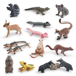Conjunto de 18 peças de estatuetas de animais selvagens, bonecos de PVC incluindo suricata, coala, gambá, salamandra, jacaré e muito mais, brinquedos realistas de animais para crianças, decorações educacionais para crianças de 3 anos ou mais Descrição: Material: PVC Tamanho: 1,3 a 10,5 cm Peso: 400 g Características: diversas figuras de animais selvagens: este conjunto de 18 peças apresenta uma variedade de estatuetas de animais realistas, incluindo suricata, coala e gambá, salamandra, jacaré e muito mais, tudo projetado com detalhes realistas. Brincadeira educativa e divertida: perfeitas para ajudar as crianças a aprender sobre a vida selvagem e desenvolver habilidades lúdicas criativas, essas estatuetas são ideais para atividades educacionais para crianças de 3 anos ou mais. Decorações versáteis: essas miniestatuetas de animais são excelentes decorações para quartos infantis, salas de aula ou festas temáticas, adicionando um toque realista a qualquer espaço. PVC seguro e durável: Feitos de PVC não tóxico e de alta qualidade, esses bonecos são feitos para durar horas de brincadeira e, ao mesmo tempo, serem totalmente seguros para crianças. Compacto e colecionável: cada estatueta de animal varia de 1,3 a 10,5 cm, tornando-a perfeita para colecionar, exibir ou usar em dioramas e conjuntos de brinquedos criativos. O que vem na caixa: 18 x Conjunto de estatuetas de animais selvagens